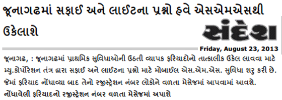 Junagadh Municipal Corporation has started using AuroSMS Instant Complaint Response Server for the Complaint Management of the Corporation. AuroSMS ICRS has removed the place and time barrier of the complainer by providing complaint mechanism on their mobile phone. It was never so easy to send a complaint for the better public service. Hurrah!